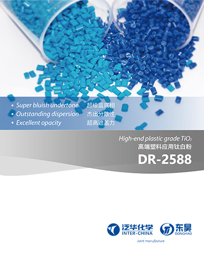 DR-2588是一種專為塑料應用而設計的金紅石型鈦白粉顏料,具有強烈的藍底相色調、優秀的著色亮度和優異的遮蓋力等性能。其特殊的表面處理確保了產品極低的吸濕性能、極低的高溫揮發分、超低的吸油量和在塑料中杰出的分散性及加工流動性能。