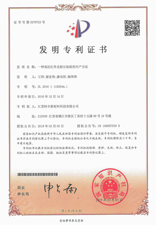 IR-1000于2016年3月由泛華化學與山東東佳集團聯合技術轉化批量生產,受到國內外多個涂料、塑料企業的關注,紛紛取樣試驗,已進入正式采購階段。IR-1000是“省高新技術產品”,還被中國生產力促進中心協會評選為2017年度“中國好技術”。本產品技術與泛能拓公司達成專利交叉許可技術合作。