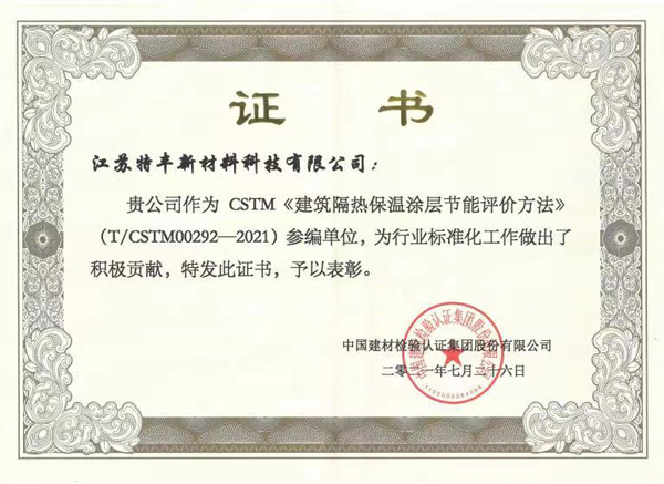 中小科技企業(yè)(特豐) | CSTM《建筑隔熱保溫涂層節(jié)能評價方法》證書 | |