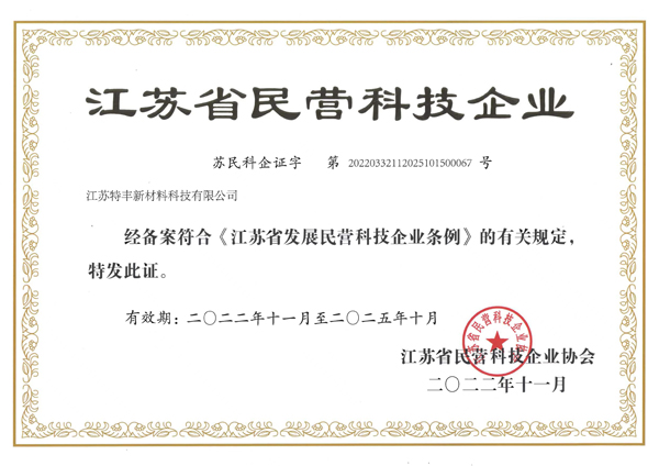 2022年度江蘇省專精特新中小企業(yè) | 江蘇省民營科技企業(yè) | |
