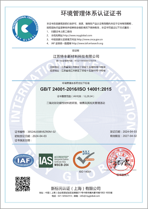 ISO國際互認證書 | 環(huán)境管理體系認證證書 | |