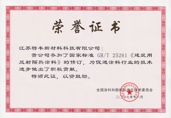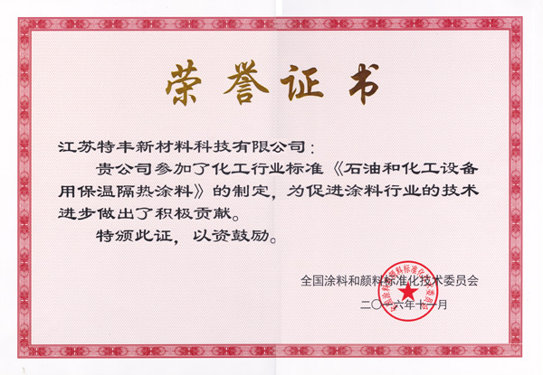 職業(yè)健康安全管理體系認證證書 | 2016年全國涂料顏料標準委榮譽證書 | |