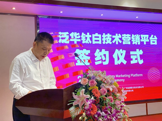 鄭州鑫濤鷗的楊新總經理代表平臺成員致辭,楊總指出:泛華化學是行業(yè)內成功的創(chuàng)新型科技公司,在二氧化鈦新材料的研發(fā)、應用、檢測方面具有國內首屈一指的技術實力和技術積累。平臺的成立,意味著大家可以在鈦白粉“高精特尖”產品的知識培訓、市場開發(fā)、產品應用技術咨詢與應用檢測服務等方面獲得強大支持。相信隨著平臺機制的不斷完善、新產品新服務的推陳出新、平臺成員及覆蓋區(qū)域的擴張,平臺必將成為國內鈦白行業(yè)合作的一個標桿,實現平臺成員、最終用戶乃至整個產業(yè)鏈的共贏。