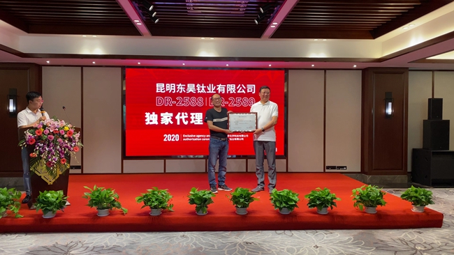 沈總代表昆明東昊鈦業(yè)有限公司向平臺授予了DR-2588、DR-2589獨家代理授權牌。倪董代表平臺與共同組建平臺的四家企業(yè)分別簽訂了區(qū)域代理協(xié)議,并進行了區(qū)域代理授牌儀式。